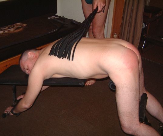 This pic was taken 9th December 2002. I've had 250 strokes of the cane so far and about to get 100 on my back with this flogger and other cats, whips etc..